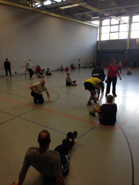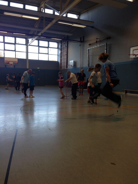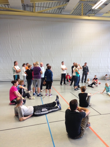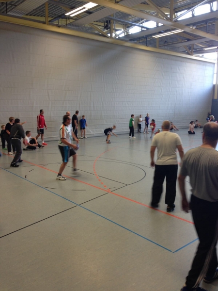 Insgesamt traten 92 Personen (Kinder, Eltern und Geschwistern) (2Std. Sport und 1 Std. essen) gegeneinander an, aber spielten auch miteinander.