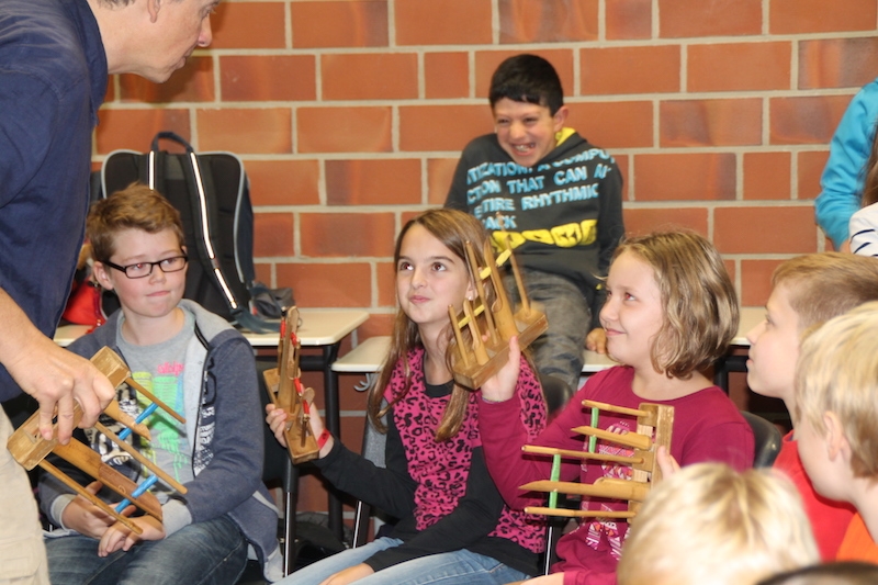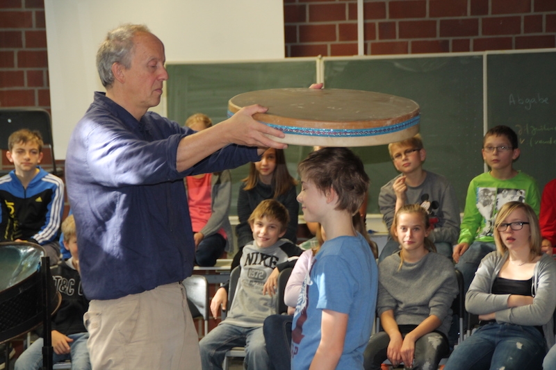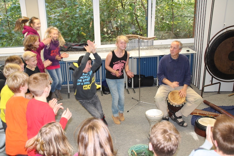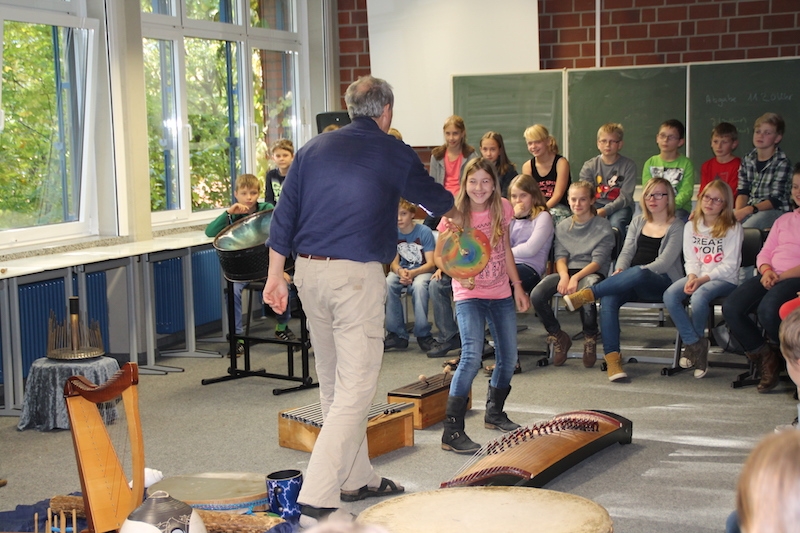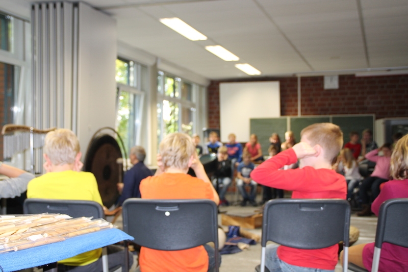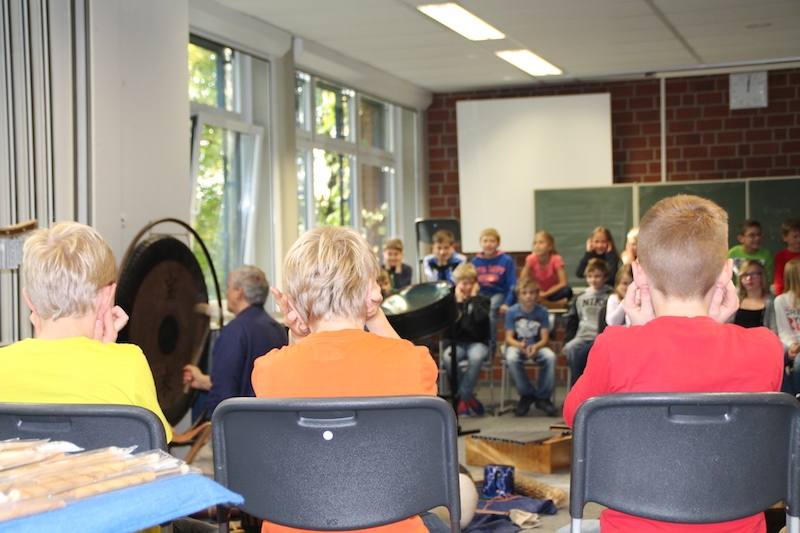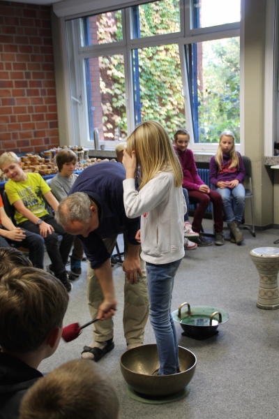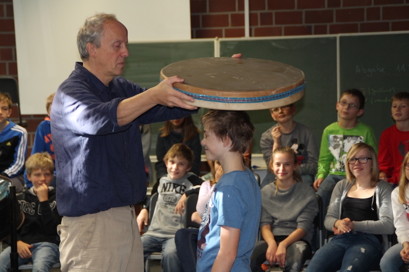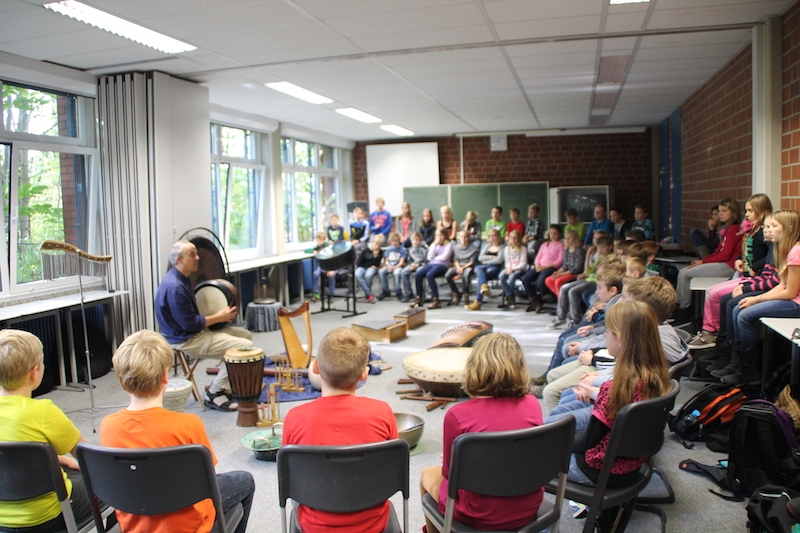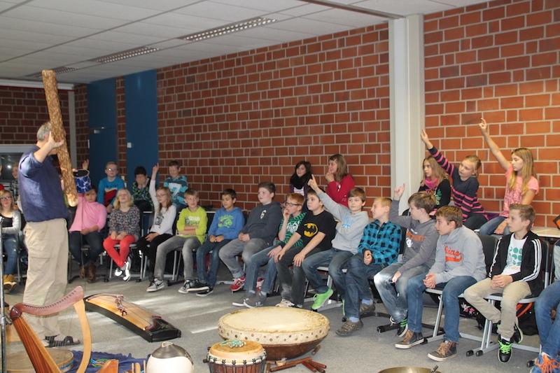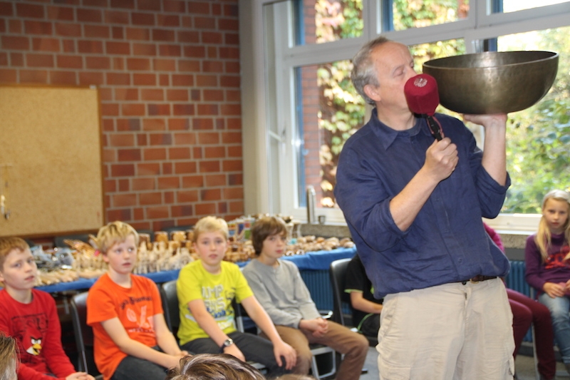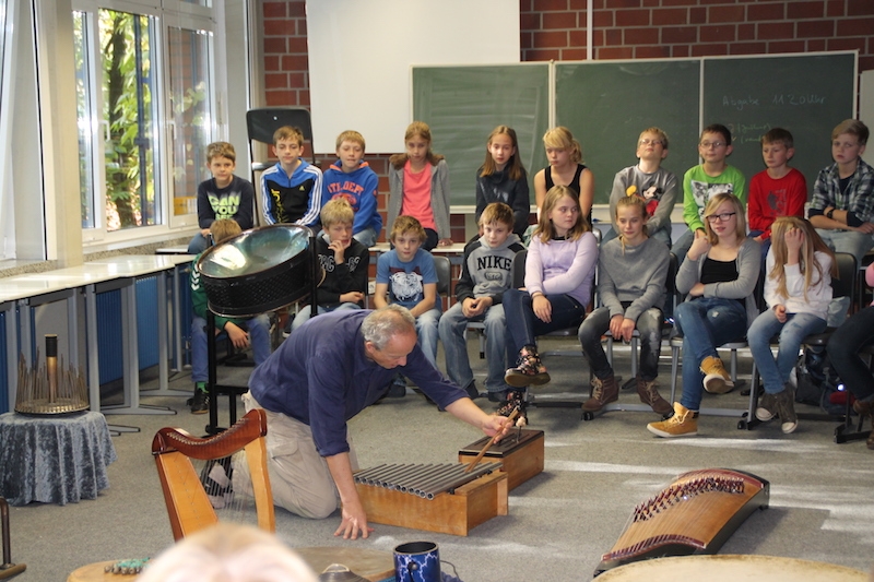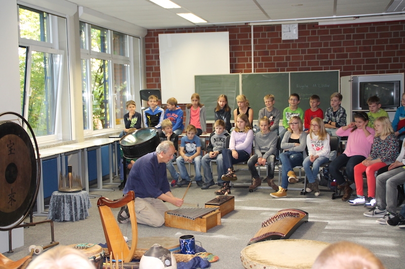 Alljährlich stellt Herr Stille den Schülern des 5. Jahrgangs unterschiedlichste Instrumente aus der ganzen Welt vor. Vor allem das Ausprobieren von Instrumenten, die ihnen sonst im Musikunterricht nicht begegnen, bereitet den Schülern sehr viel Freude. Am Ende entstand ein gemeinsames Musikstück, in dem auch Raum für die Improvisationen war.