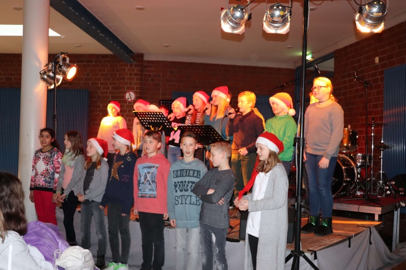 Die Aula war auch in diesem Jahr wieder sehr gut besucht, als „Schüler für Schüler“ ihr einstudiertes Programm auf dem traditionellen Künstlermarkt vortrugen.