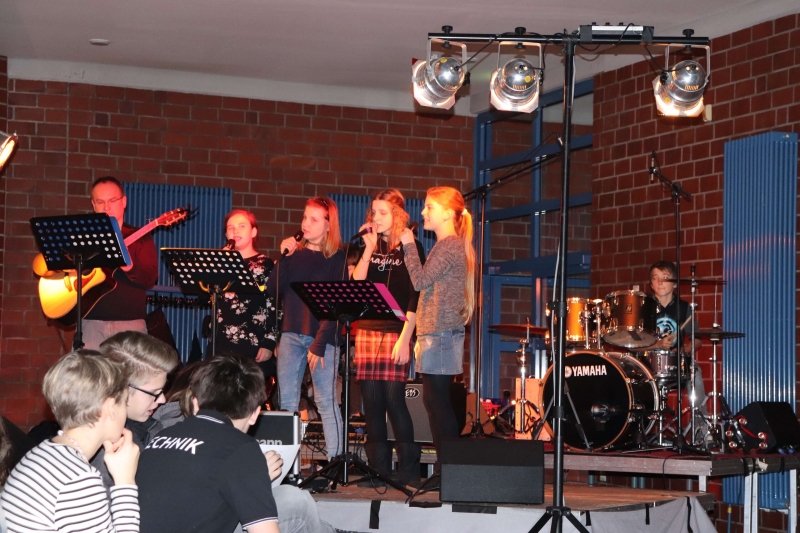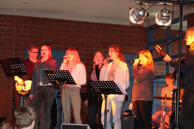 Die Schulbands, einige Klassen, ein Oberstufen-Sport-Kurs und der Bläserkreis „Alles nur Blech“ stellten ein umfangreiches Programm vor. Lieder, Tänze und ein Rap unterhielten das Publikum. Außerdem wurden die Teilnehmer der Matheolympiade geehrt.