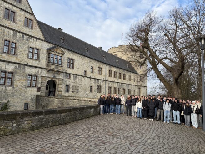 Wir, die Klasse 10h, unternahmen gemeinsam mit der Klasse 10g einen Ausflug zur Wewelsburg nahe Paderborn. Ziel war es, uns mit dem Wirken der SS zur Zeit des Nationalsozialismus, mit dem wir uns im Rahmen des Geschichtsunterrichts bereits intensiv befasst hatten, auseinanderzusetzen.